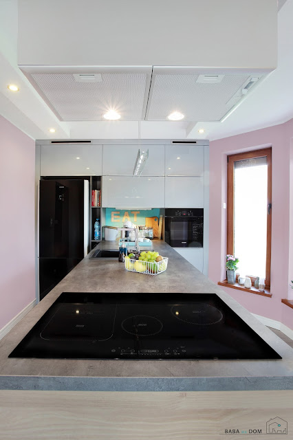 To, że kuchnia nie jest normalnym pomieszczeniem w moim domu, to już słyszałam nie raz ;-) Nie każdemu się podoba układ wielkiej wyspy pośrodku wnętrza i to, że trzeba poruszać się dookoła niej, w zależności od tego, czego akurat się potrzebuje. Jednak słyszałam też głosy zachwytu, że dobrze została rozwiązana ergonomia pomieszczenia. Wszystko jest co do centymetra wyliczone i zbudowane tak, że swobodnie korzystam z każdego sprzętu i szafki.